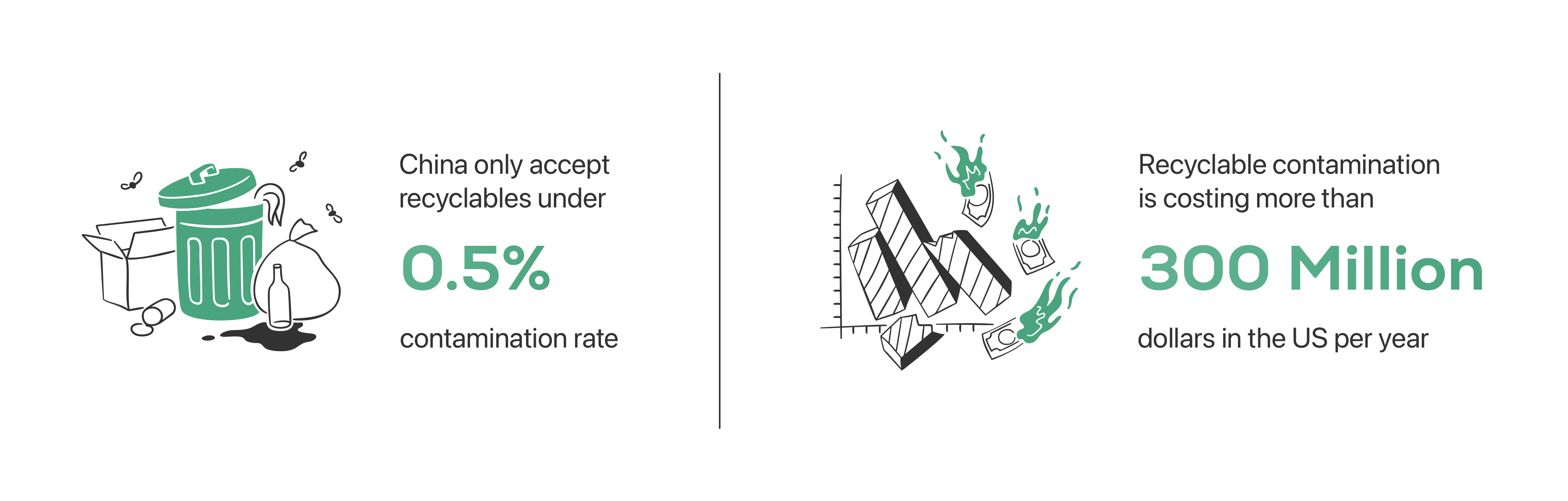 Since 2001, China was the biggest buyer of American recycling. Much of the world, especially America, has been handling a large part of the recycling by exporting everything to China. Until Operation National Sword in 2018, China banned several categories and materials from being imported and only accepts waste with under 0.5% contamination rate. This implemented operation helped expose American Recycling deficiencies: MRFs (materials recovery facilities) need to put more effort into improving recyclables' quality and ridding recycling contamination. The additional costs, which are generally around 300 million dollars per year, can be significantly reduced if MRFs receive cleaner recyclables.