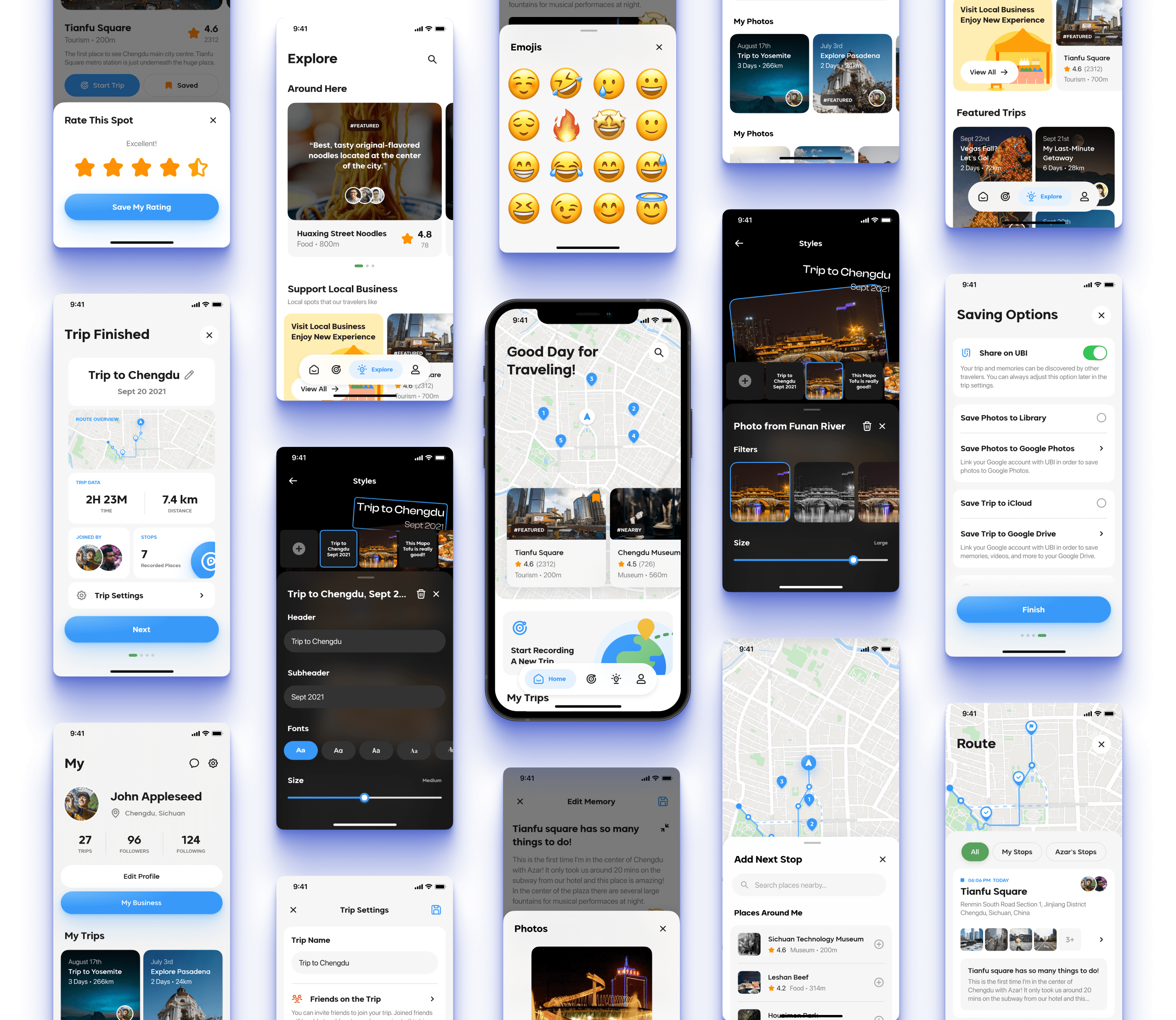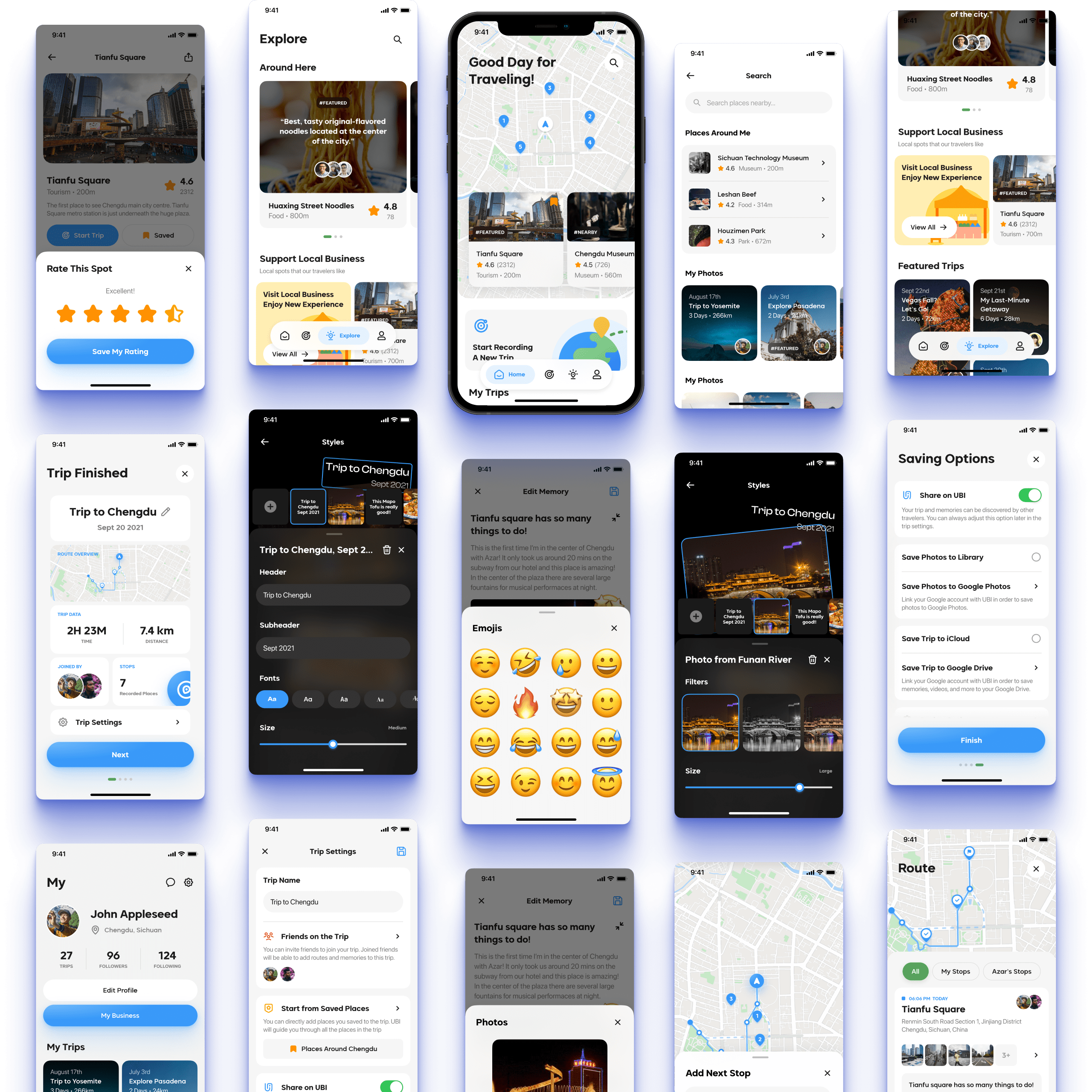 UBI provides features including reliable point of interest discovery based on real user feedback and trip data, real-time and customizable traveling records, shared trips with friends, and easy memory sorting and storing. All these features allow travelers to enjoy a further elevated traveling planning, recording, and memory-storing experience without sacrificing the enjoyment they get in the traditional traveling process.