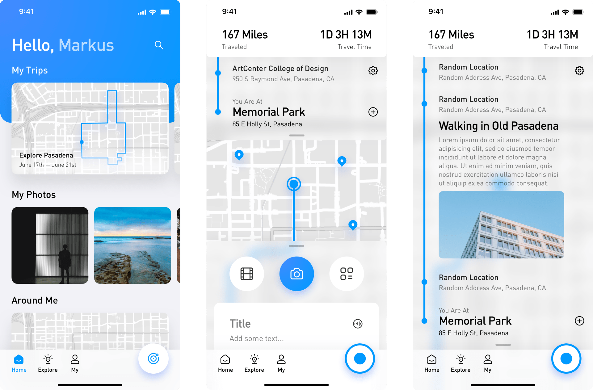 This mid-fi flow helped us clarify the four main sections users are going to face after logging-in the app: Home, Record, Explore and My. Each individual section also features different types of content and interactions.